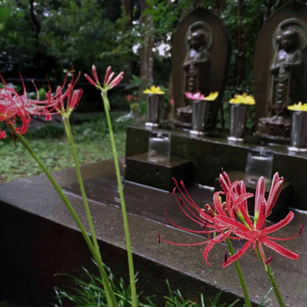 近所の神社をのぞくと彼岸花が境内のあちらこちらから顔を出してた。雨で薄暗いその場所に灯が灯ったみたい。滅多に感じない古い日本の色をそこに見てた。日本の楽しみ方。