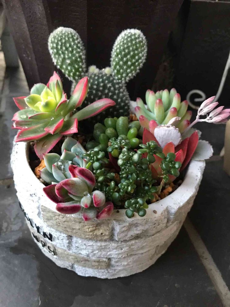 多肉ちゃんの寄せ植え🌵ずーっと敬遠してたけどやってみると楽しいね🎶