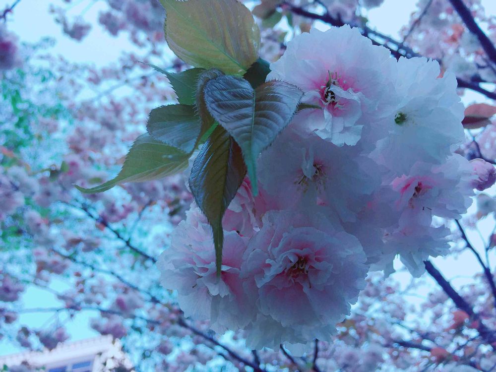 薄紅の八重桜。ソメイヨシノが終わり、八重桜の季節になりました。