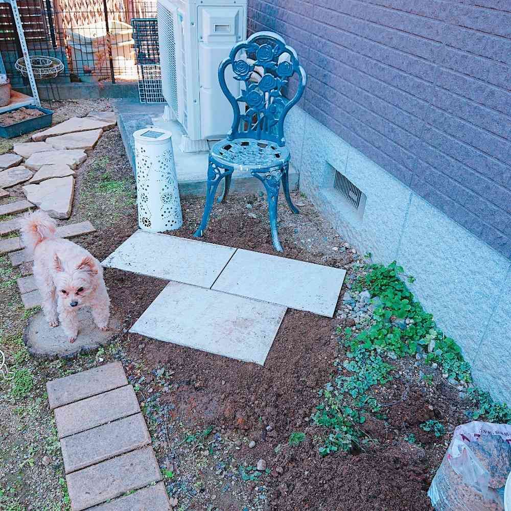 植え替えなどで使ってた場所に椅子を置いて休憩場を作りました🎶
