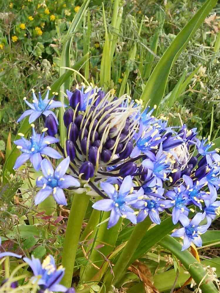 教えて頂きました、シラーペルピアナ球根で耐寒性のある五月頃咲く花らしいですが100近い花が付くみたいですな