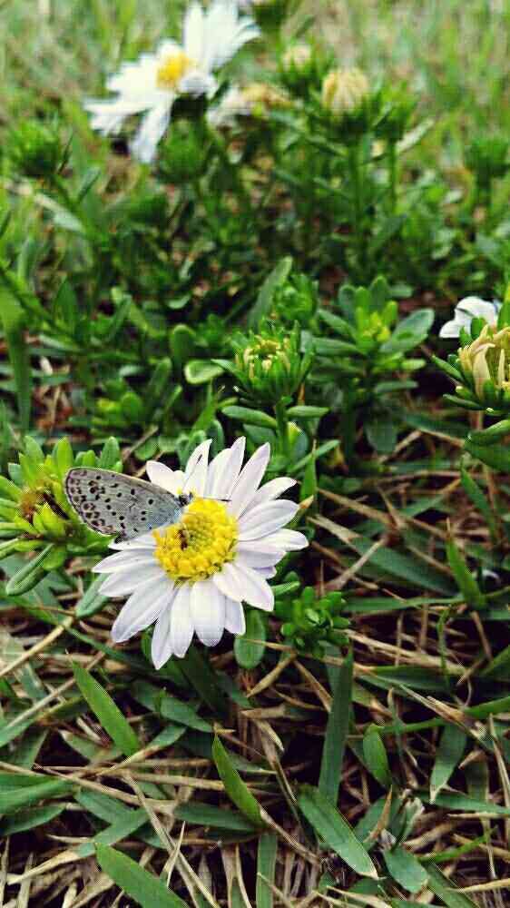 お出かけ先の🌊岸壁に可愛く咲いていたお花❀にシジミチョウが…これぞ自然の姿😊