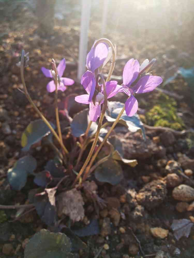朝陽に春の使者のすみれ・・・可愛いですね❤️