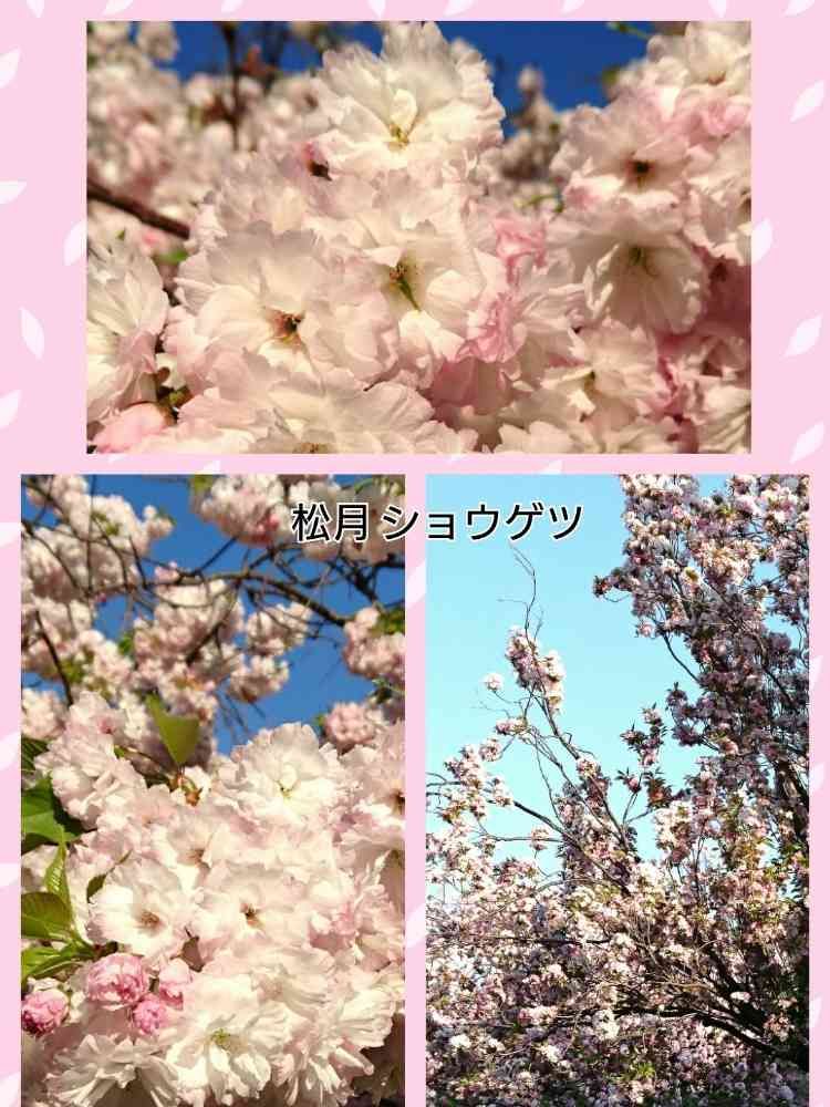 🌸八重桜 一葉(イチヨウ)との違いは花の時期が松月の方が遅い。松月の花の咢にはギザギザがある。←これだけ花がある時には咢は見えませんね~😆