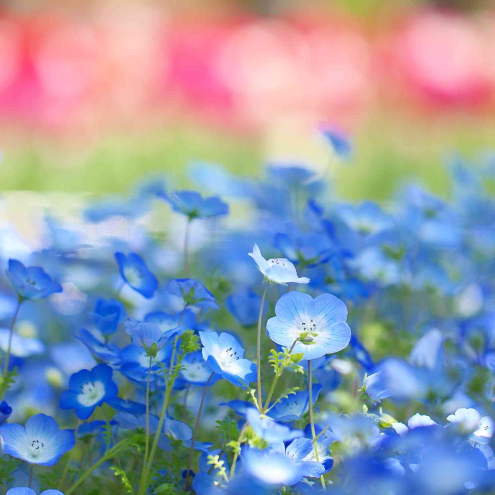 さん♪こんばんは😊たくさんのネモフィラ、可愛かったです💕後ろの赤い色はチューリップ🌸です😆