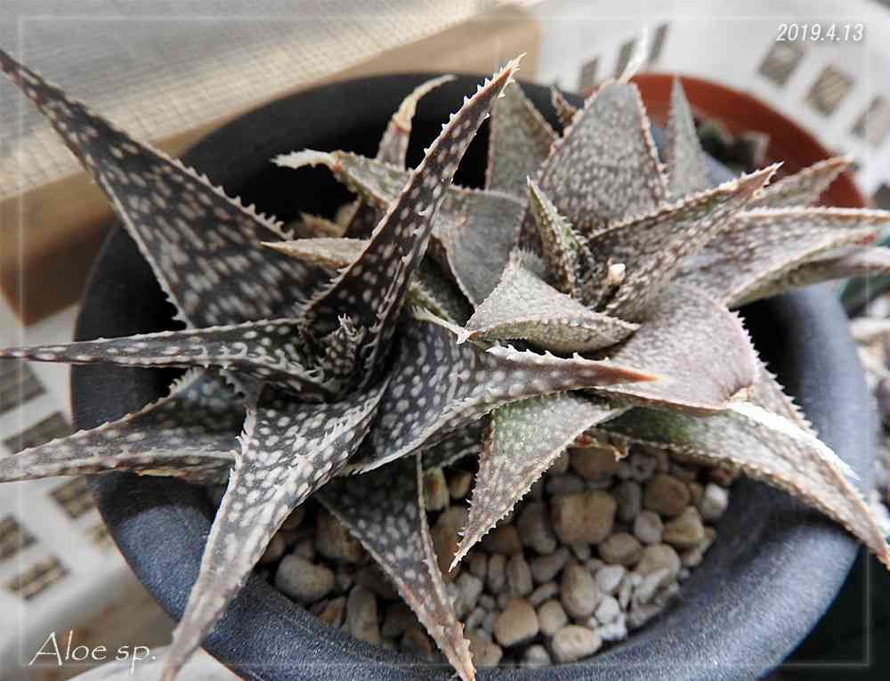 種類がわからないアロエが3株ほど植わってる。冬の間は心配になるほど灰色っぽくなっていたけど、だんだん色が戻ってきた。