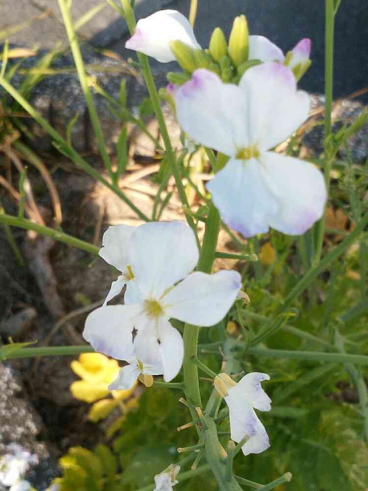 菜の花(大根の花)、白と少し紫色の花も咲きだしてました