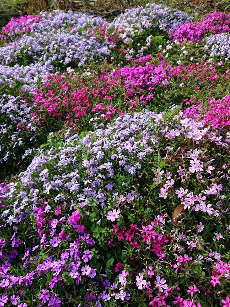 ウチの玄関の前(隣りの畑)に咲いている 芝桜 彩やか😆😁