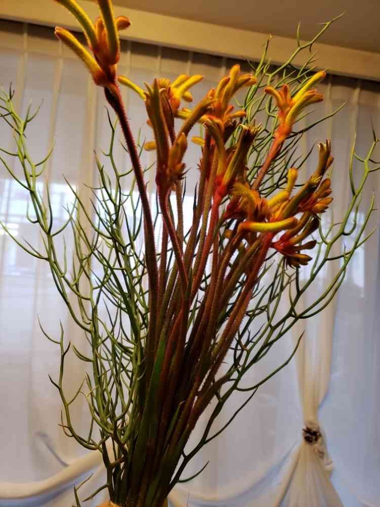 アカシア・レインディアワトルも少し剪定したので、カンガルーポウとドライにして組み合わせて見ました~🌿