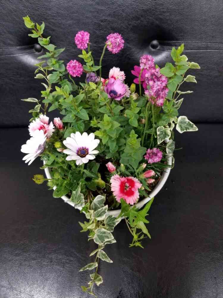 今回は、ピンク系の優しい寄せ植えに、しました🎵どちらから見てもいいように、しました❗