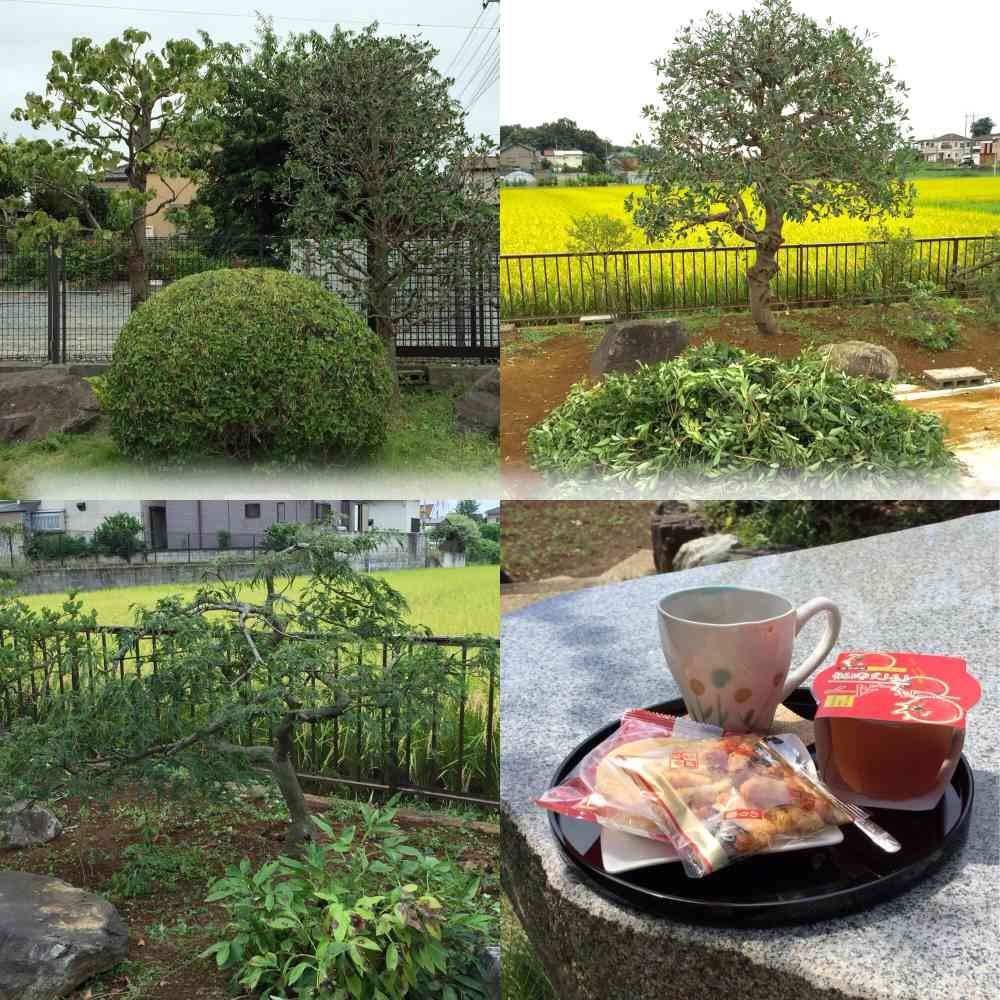 引き続き、左上 花水木.モッコク透かし剪定♪手前下ドウダンツツジ刈り込み♪ 右上 山桃透かし剪定♪ 左下 モミジ透かし剪定♪ 右下 お茶♪頂いてマス(。・∀・)b