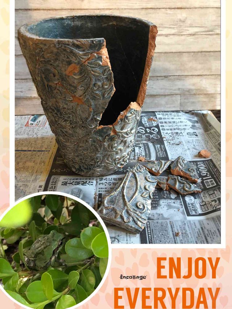 フチを少しだけ欠けたままにして、そこから植物を垂れさせても良いし、ピースが欠けている所に穴が開くならそこに多肉等を植え込むのも良いと思います。