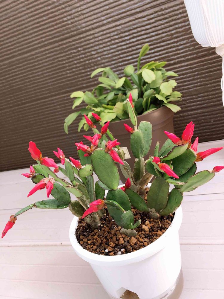 後ろは そろそろ日向に出すのに 待機中の シャコバサボテン♬