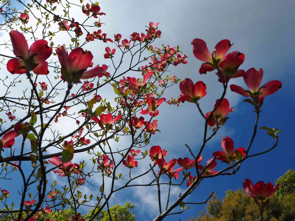 背が高すぎて、正面から撮れませんでした💦下から見上げたハナミズキです。