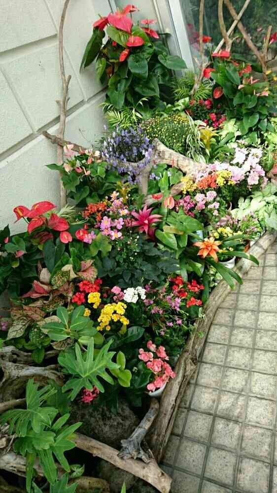 素敵~流木も使われてるのね✨元気になるカラーの寄せ植えね❤
