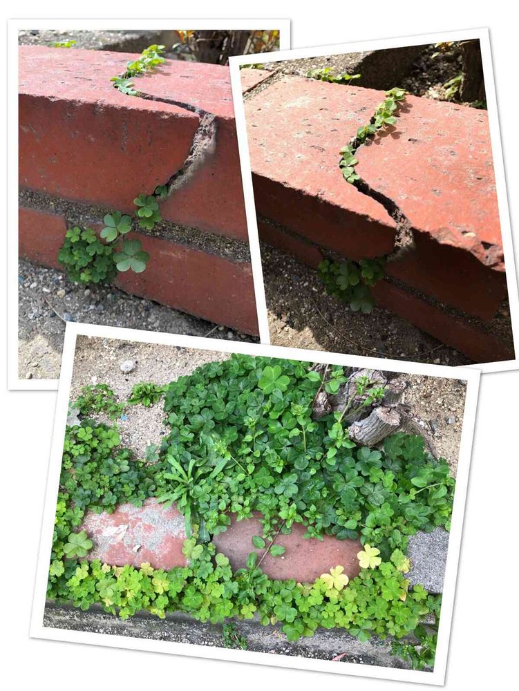 もはやレンガの隙間の植物というより植物の隙間のレンガな物も…