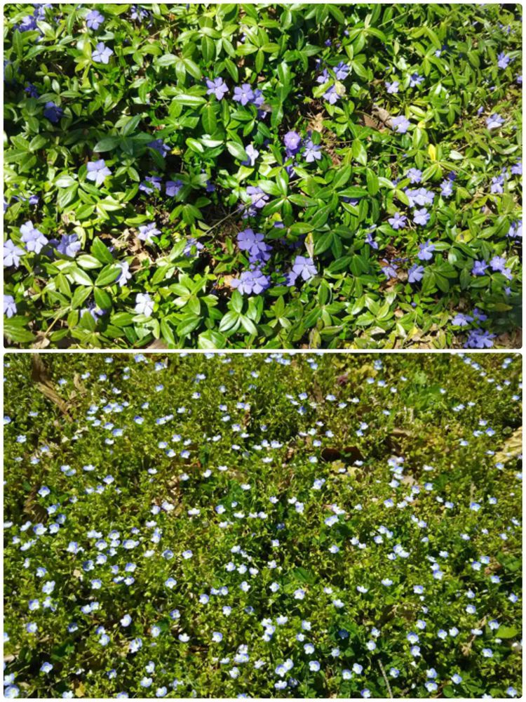 ツルニチニチソウと、オオイヌノフグリのカーペット✨