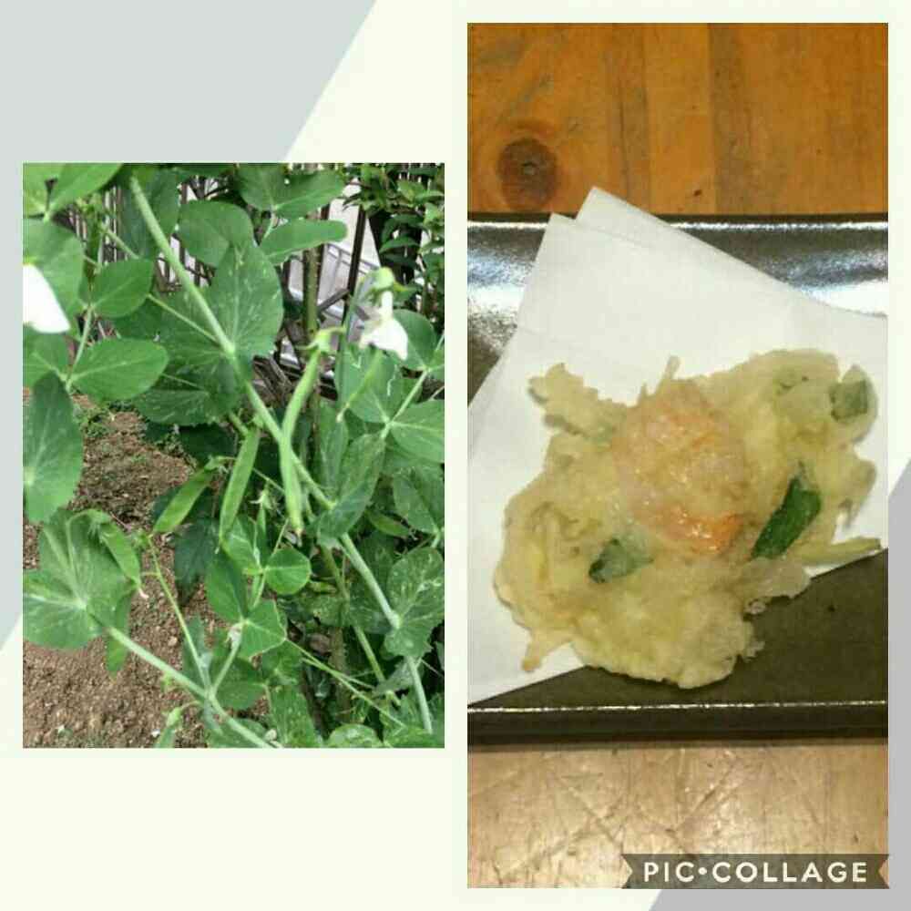 庭で育ったエンドウを
