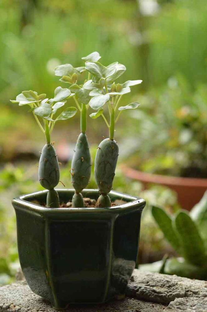 成長は、遅いそうですが私が見たのは確かに大きな七宝樹。鴨川のインディアンサマーというペンション。多肉ショップは、南房総市千倉のBinowee(ビノウィー)。うちのは、10cmです。