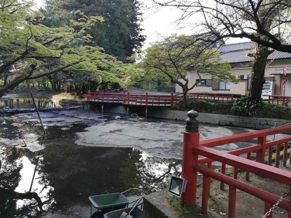 一部だけ水を抜いて、他のところに大きな鯉などを入れ、泥や木などをかきだしていました。
