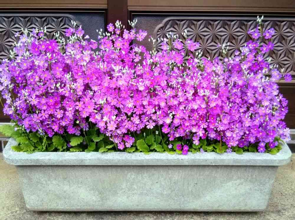 幅20㎝横70㎝高さ30㎝のプランターに私植えてませんが昨年サクラソウのお花💠が咲いてちょっと離れた所に置いていたこの鉢にこぼれ種ではなく飛び種で生えたお花💠なんです😆