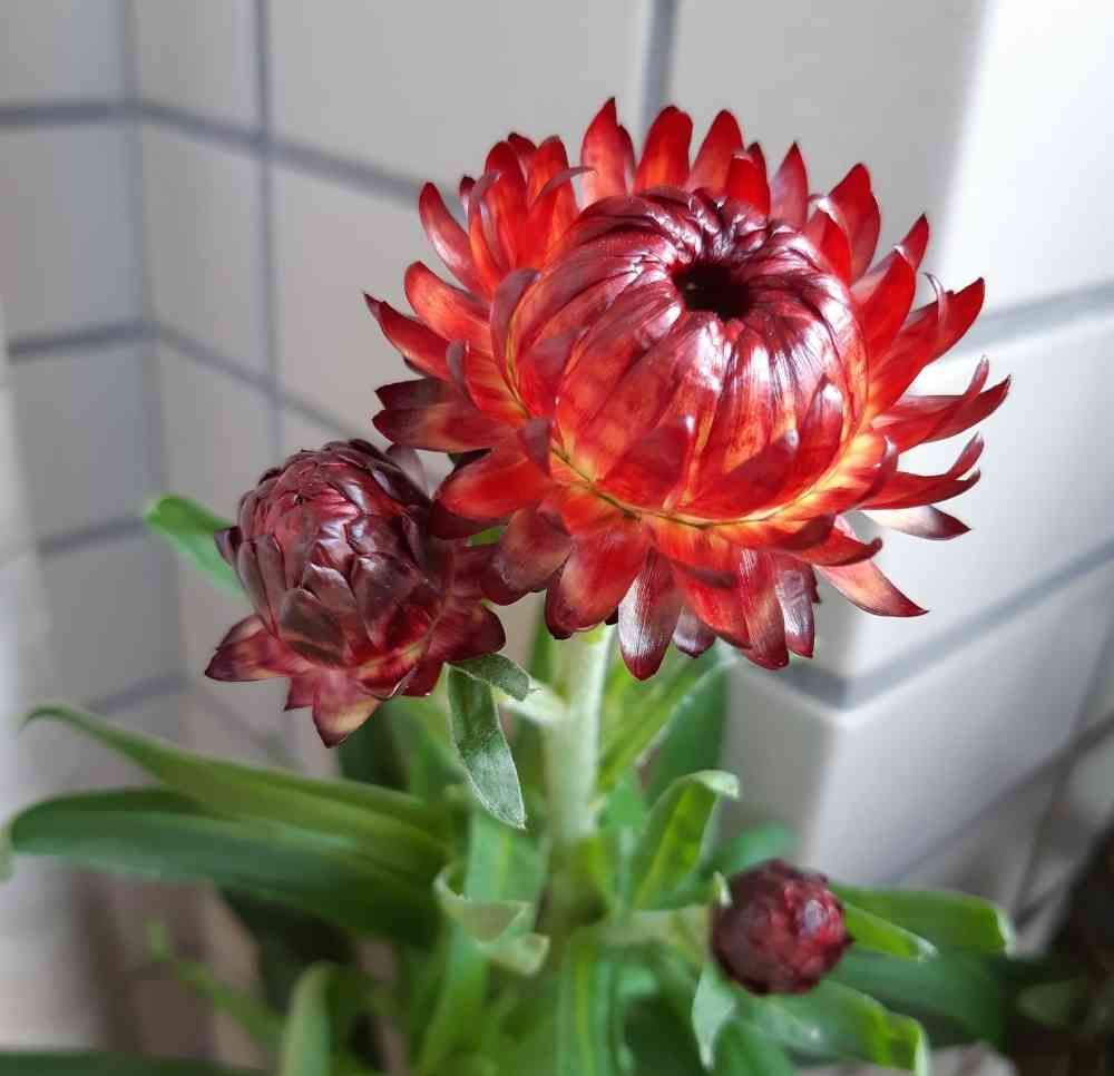 蕾は黒に近い濃い紫色でしたが開いたらこんなに美しい赤色に!