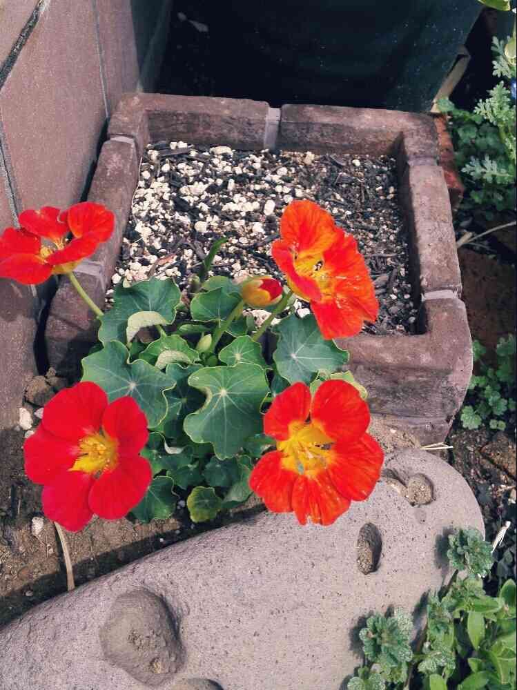 ナスタチウムの奥に 諦めかけてたドイツスズランの発芽💓
