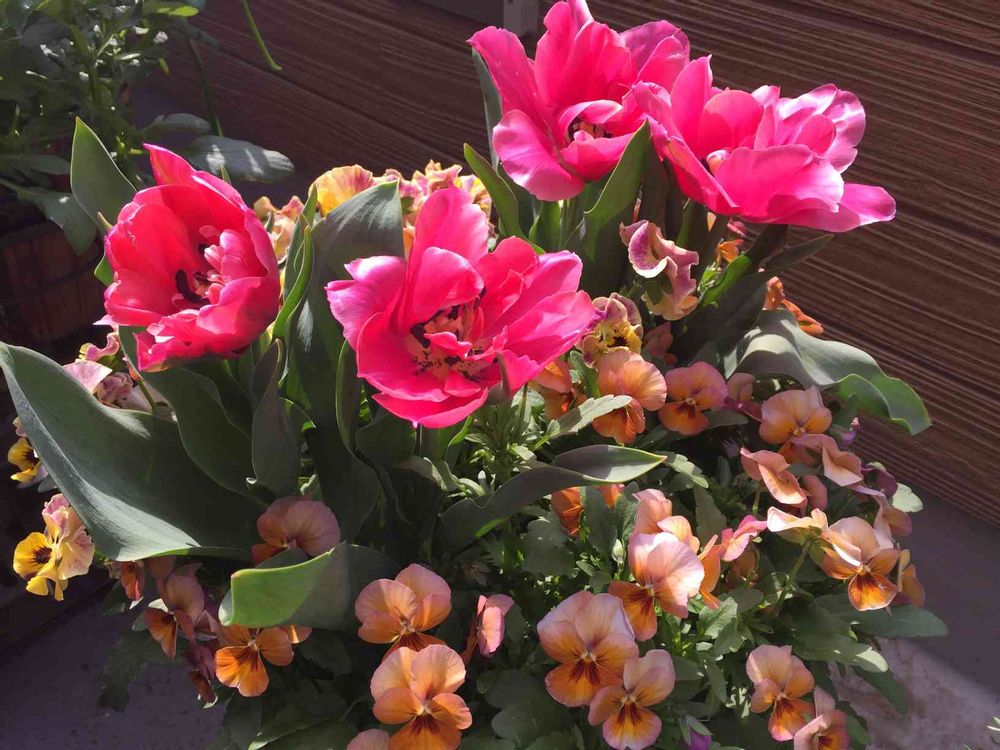 バルコニー/ベランダ,チューリップ サンセットトロピカル,ビオラ ももか 夕焼けの投稿画像