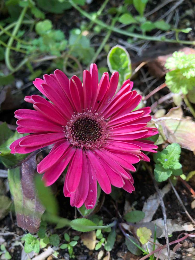 昨年、お花屋さんでオマケにもらったガーベラ。花が終わって地植えにしました❣️