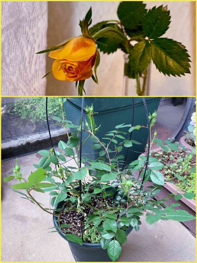 フライングで咲き始めた一番花は下の方の葉っぱに隠れる場所だったので切り取ってお部屋に💕