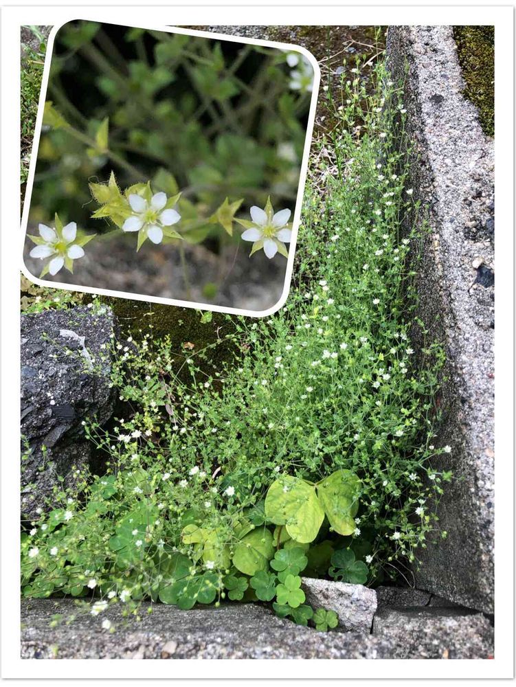 白くて小さい花は種類がたくさんあるけど花弁に切れ込みがなくてガクが尖ってたら多分ノミノツヅリ