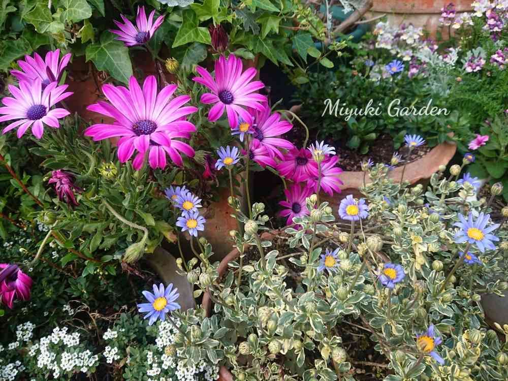 鉢で育ててるオステオも綺麗に咲きました。班入りのブルーデージも咲きだしました*ˊᵕˋ*ꕤ*。゚