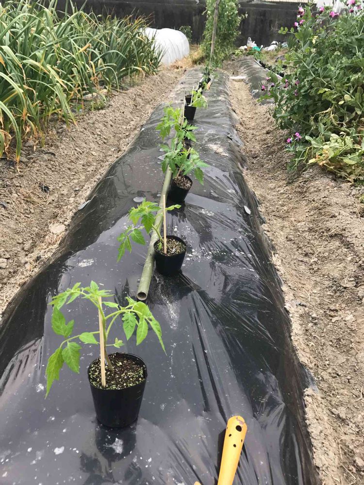調理用トマトのライン、サンマルツァーノとボンジョールノを6株ずつ植えました。