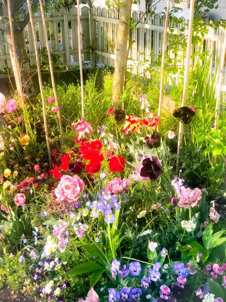 ダリアを植えました。せっかくの花壇がダリアの支柱で台無しににならないようにプラスチック性では自然の竹の支柱を捜し求め立てました。素朴でいい感じです。花壇の主役はチューリップからラナンキュラスにバトンタッチ。