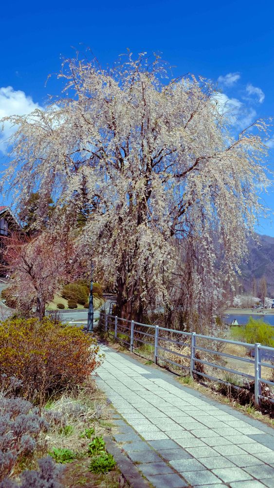 河口湖畔の見事なしだれ桜2