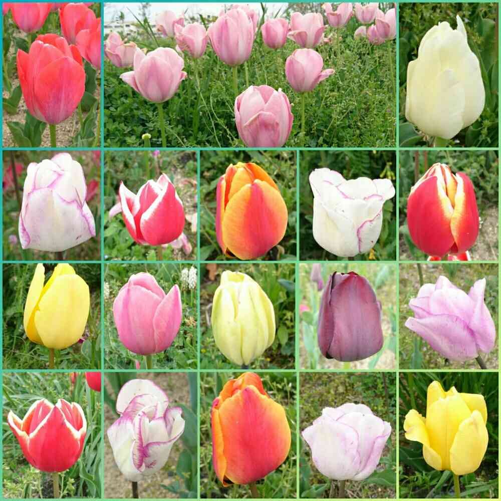 たくさんの種類のチューリップ🌷 一枚に集めると改めて種類の多さに驚き👀‼ますq(^-^q) 春のチューリップ🌷良いですよね🎵
