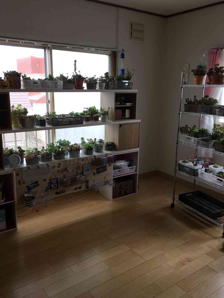多肉愛、職場の先輩の影響♡ 多肉棚はパパさんのお手製٩(๑❛ᴗ❛๑)۶