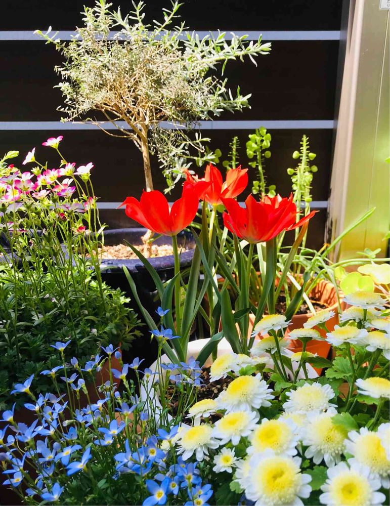 くぅちゃん♪さんのバルコニー/ベランダ,今日のチューリップ,マトリカリア♡の投稿画像