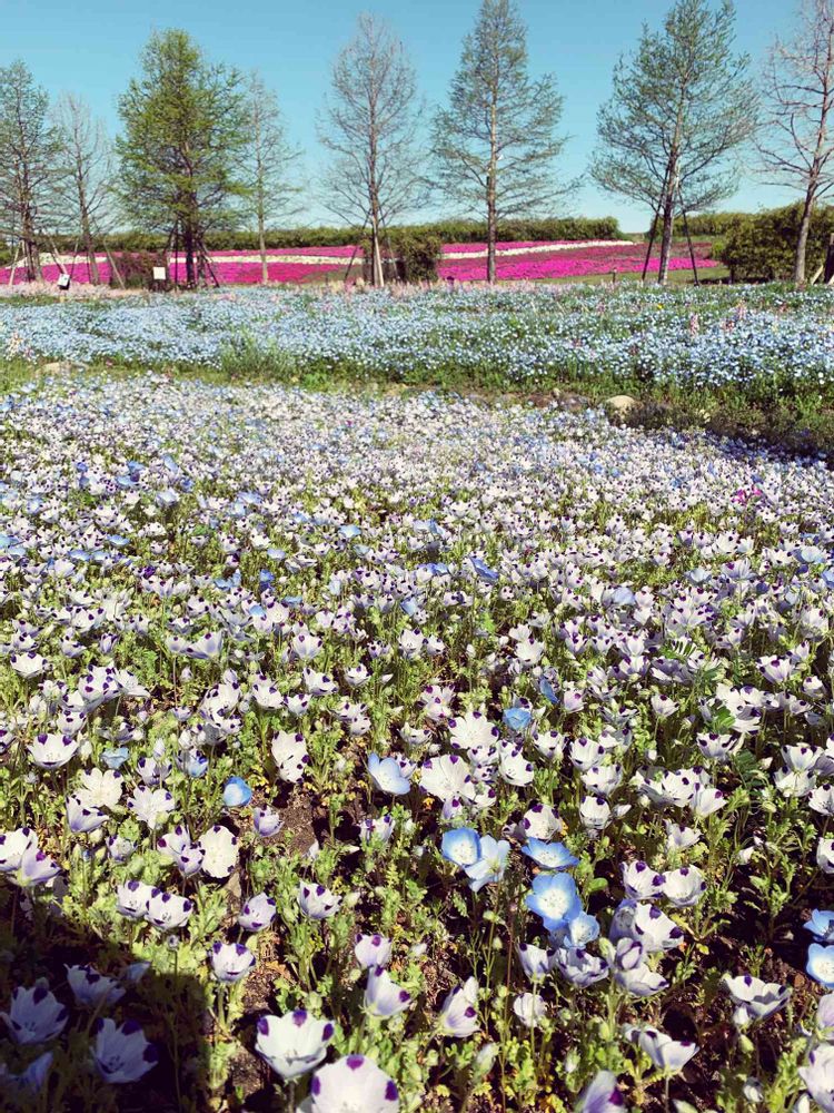 奥の芝桜と手前のネモフィラのコントラストが綺麗でした😊