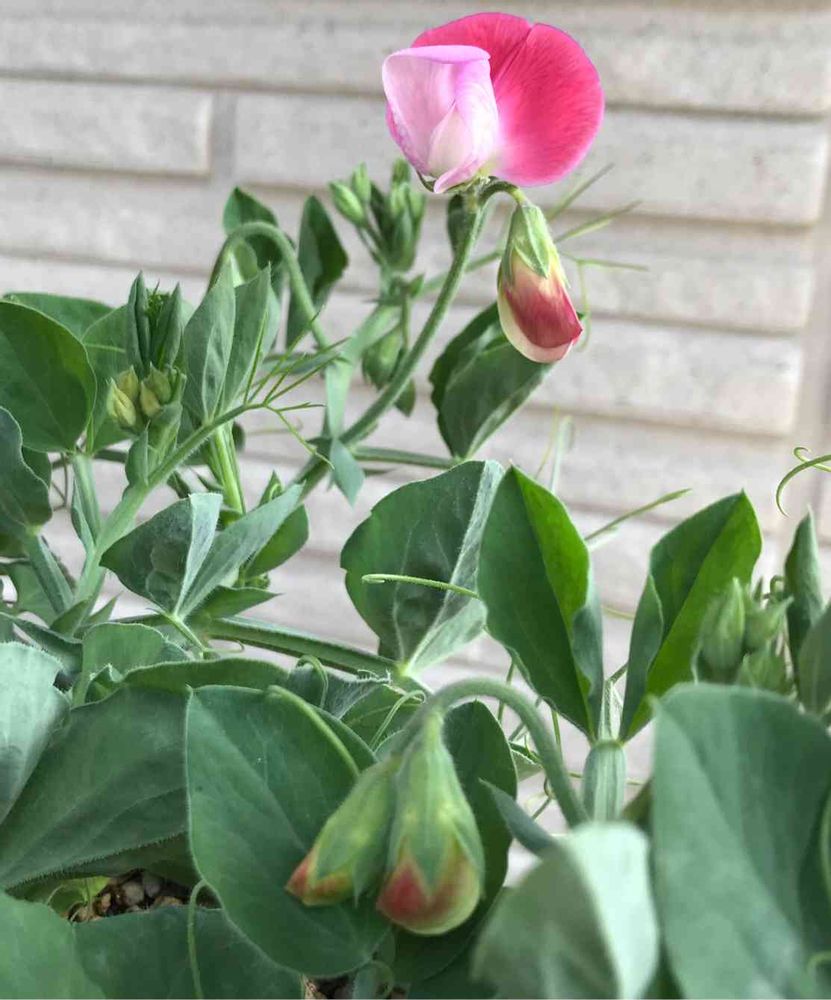 支柱がいらないスイートピー👍ってことで面倒くさがりの私にぴったり😁摘芯するとこんもりお花が咲くとか🤔初めてのお花🌸です😆