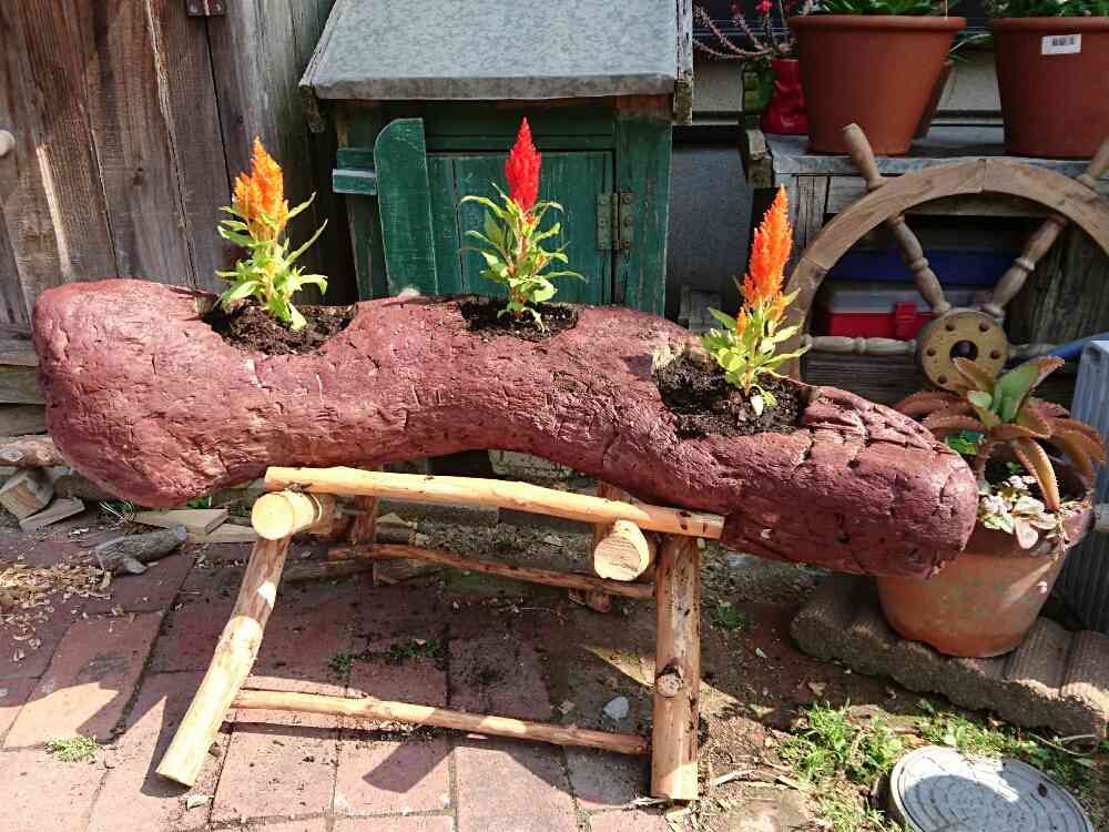 主人が掘った「big かりんとう」にけいとうを植えてみました😃