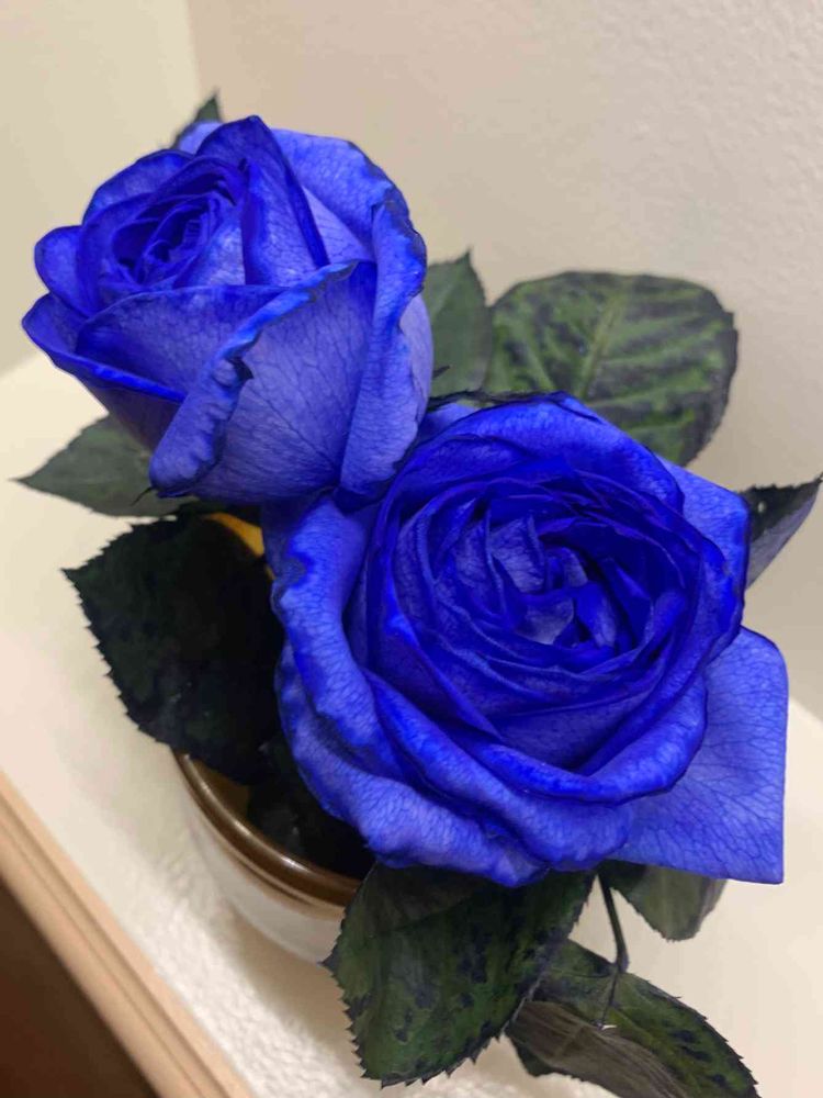 青いバラは本当に青いのだなーと見入ってしまいました。