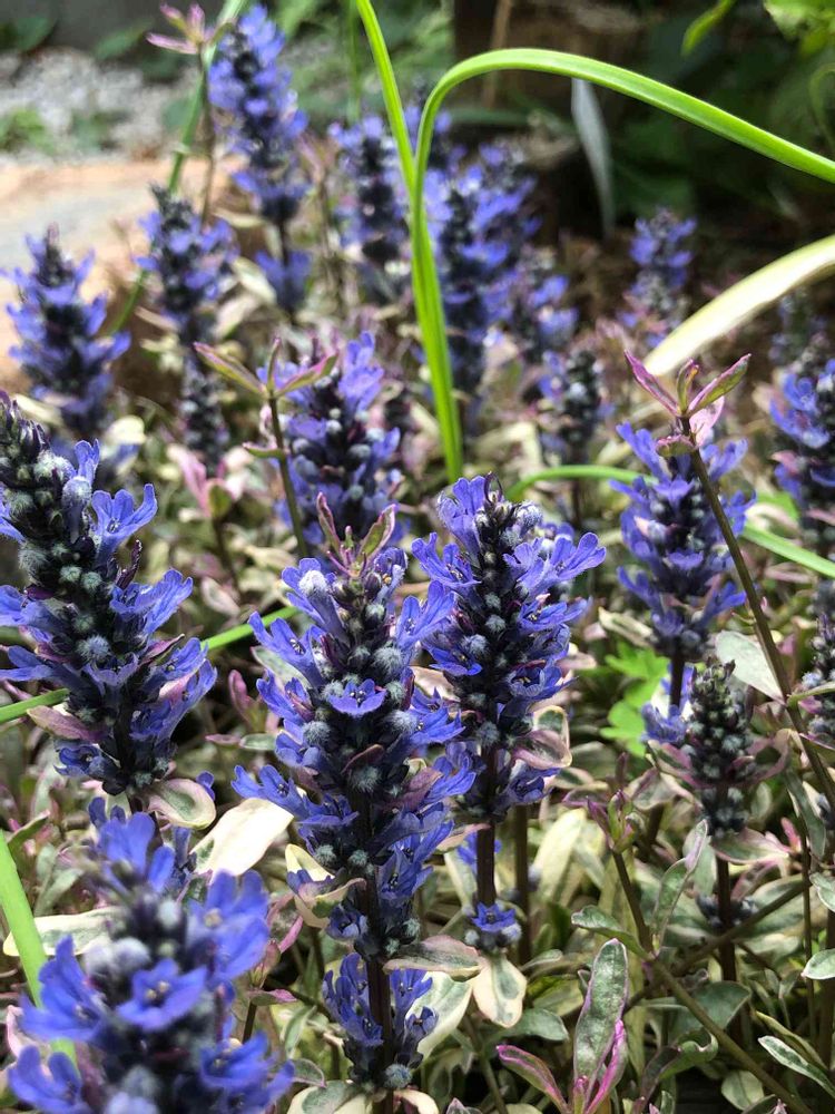 斑入りでピンクがかった葉っぱから青いお花がでてくるのがなんともかわいいです💕💕シェードガーデンを作成中なので、アジュガいろいろ増やしたいなぁ✨✨
