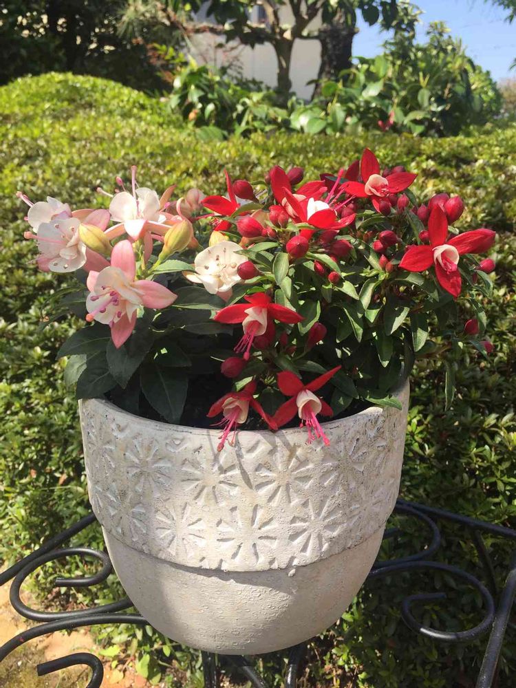 先にこの鉢が気に入って、鉢に合うお花を探してフクシアを買いました。買い方が逆だよね😆