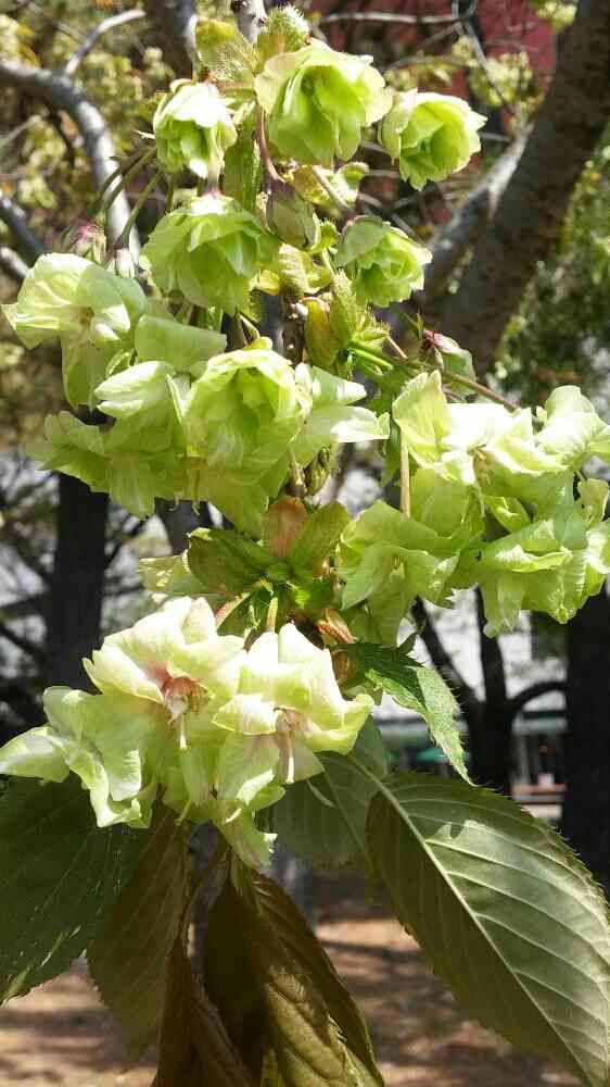 素敵な黄緑色の桜ですね❣️