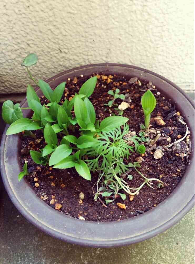 いろんな芽が出てきていてちょっと面白い鉢植えです。