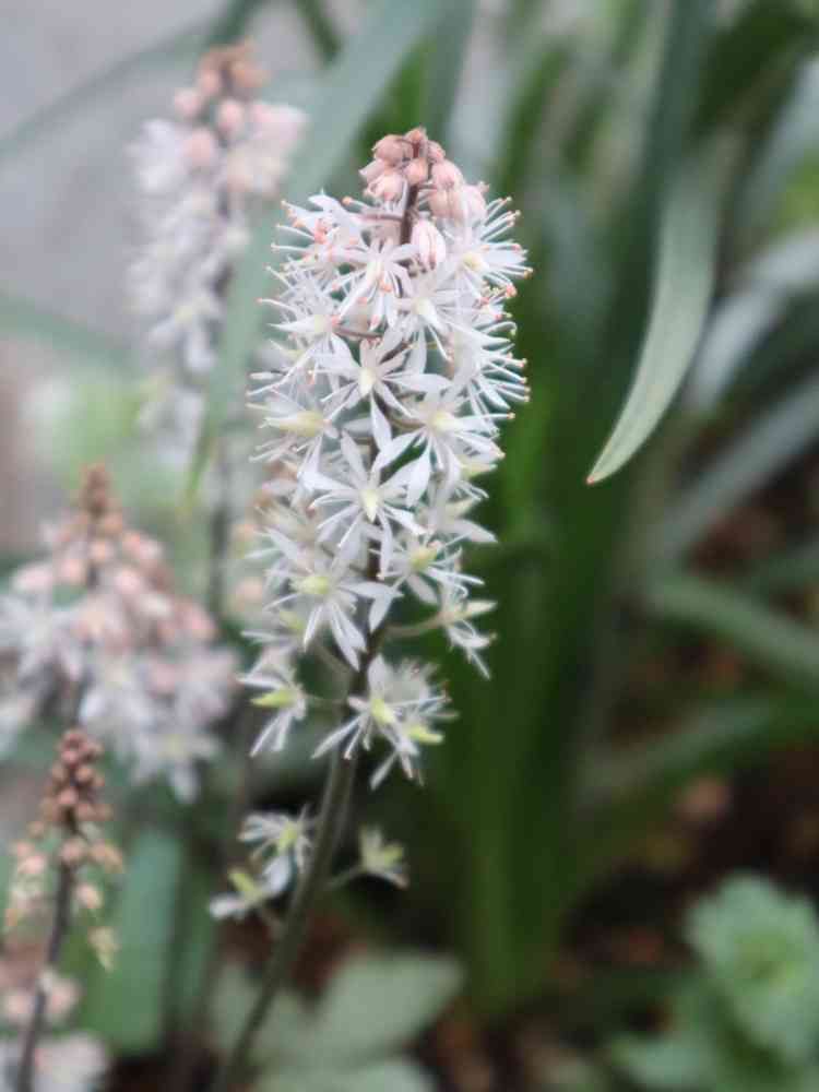 ティアレラです。ポスト横の花壇の奥で、テッポウユリの陰に隠れて静かに咲いています。そばには、ドクダミの葉っぱが元気になってきて…日陰組さん、今のところ無事です。このまま