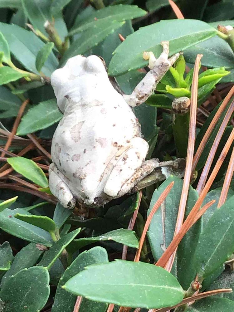 みています。 色素が 薄い アマガエルの中には、この様に 白っぽくなるのかも 知れませんが、、アマガエルは かなり、時と 場合、、かなり 身体の色も