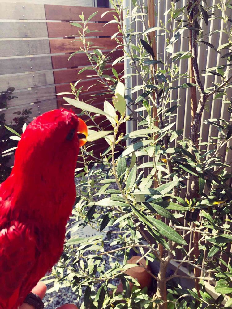 わが家のインコはオリーブの葉っぱを千切って羽根に塗り込む、という習性があります。羽根に良い成分が含まれているんでしょうねー。