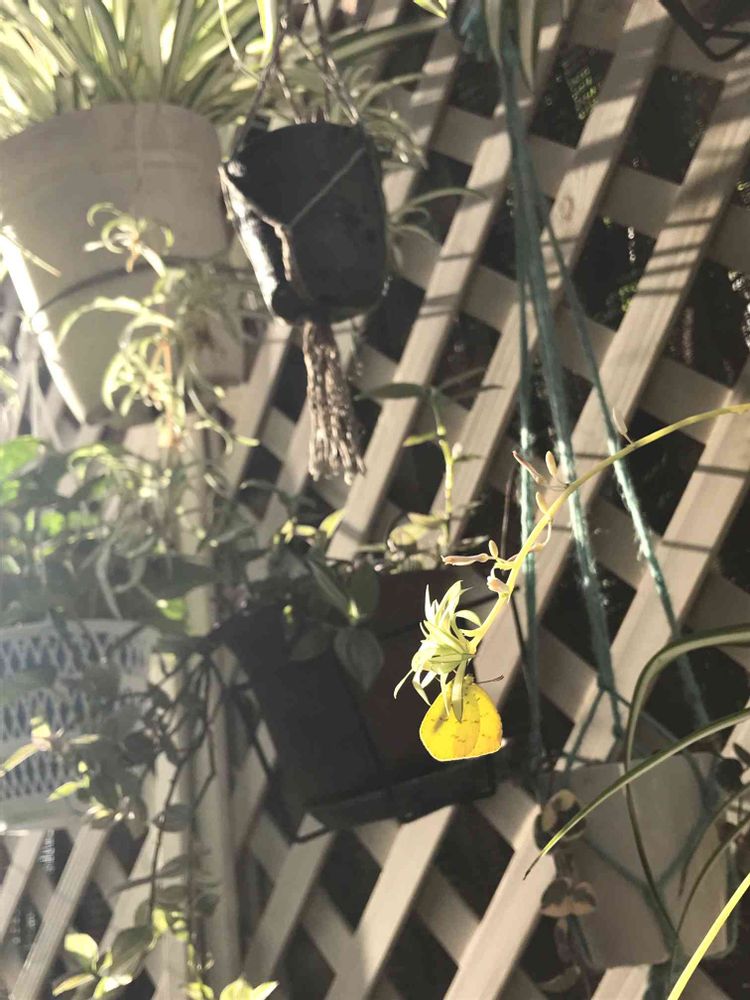 オリズルランのランナーの先の子株に、黄色いお客様が💛